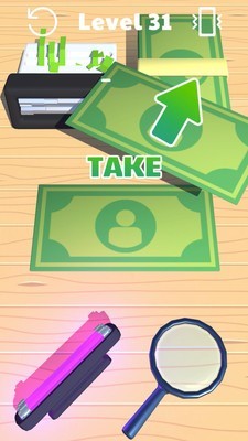 当给我们一定的钞票,我们能不能成功进行理财呢?快来试试吧!这理财达人是一款模拟验钞游戏。理财达人游戏里,玩家可以通过放大镜和各种工具检测假币,学会一些简单的检测方法,最后可以将假币销毁!