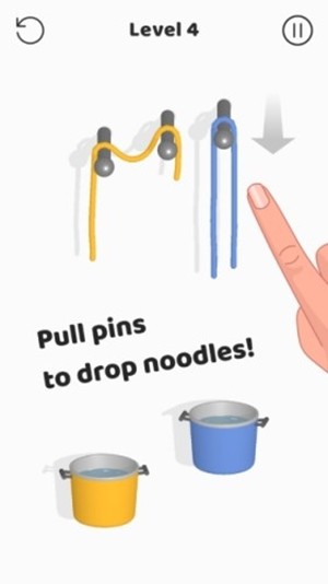 这款手游看似简单,但是非常有趣,还有各种面条,但属性都不一样哦,快来试试吧!下面条游戏是一款非常魔性的休闲手游,你必须要操控面条让面条掉进锅子里,掉到地上就算输了哦,所以一定要对精准,相同颜色的面条要放入相同颜色的锅中。
