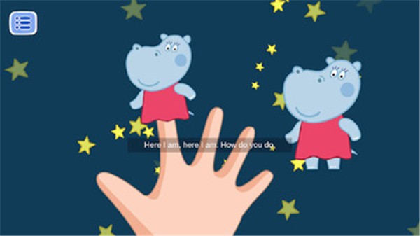 手指家庭是一个教育性和互动性的英文歌曲,Hippo以不显眼的形式帮助学习家庭成员的名字。 唱有趣的互动歌曲,与我们一起玩吧!