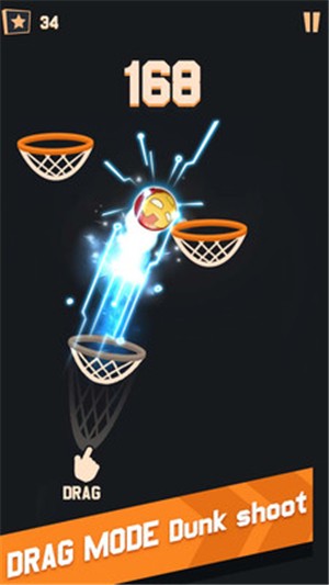 在这个无尽的篮球比赛中,您可以享受2种游戏模式:点击模式和拖动模式。