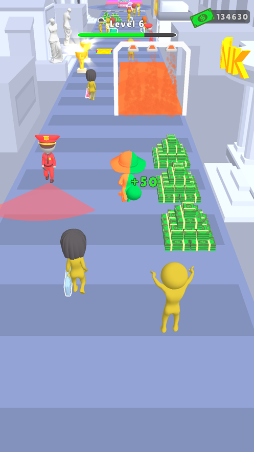 1、简单的操作方式,滑动屏幕控制小偷。别被发现。毕竟你是个职业小偷。