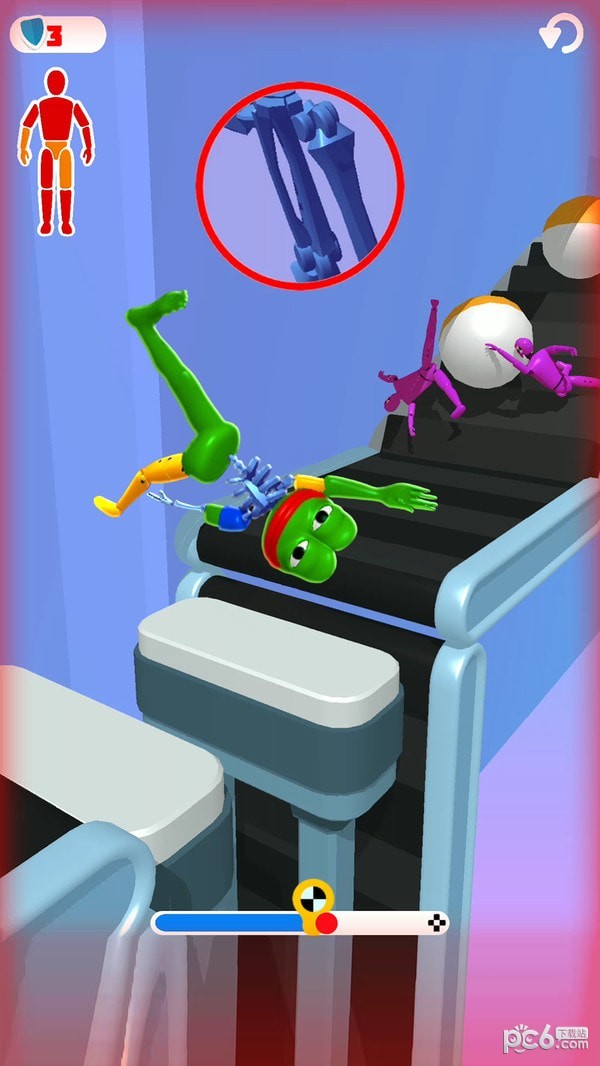 游戏中有很多陷阱,而为我们需要想尽办法来保护好自己的安全并成功到达终点,绝对非常有趣!这老铁你还好吗是一款卡通风格的趣味竞技游戏,以橡皮人为主角,玩家可以控制橡皮人,使用各种机械来破碎骨头,操作玩法有趣,要保证能够安全的抵达终点。