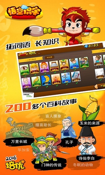 ·《悟空识字》以西游记为故事背景、15大场景、120多个识字游戏、1200个识字动画;
