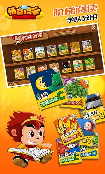 悟空识字根据孩子生长发育和认识事物的特点,为孩子设计了一套科学的教学流程。从集中识字阶段,引入词语、句子的学习,通过阅读掌握字、词在实际生活中的应用,提高孩子的阅读兴趣和阅读水平。