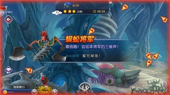 3、多样技能,多种炮台!丰富玩法,章鱼BOSS,食人鱼BOSS,花样鱼阵变换,万倍BOSS来袭,多种休闲社交玩法满足同屏爆金体验。