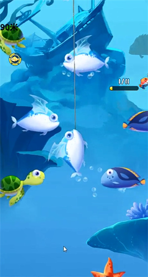 1、玩家将驾驶着你的小木船前往大海上放置你的鱼竿钓鱼,去捕捉各种值钱的特色鱼类,并将它们卖出,获取更多的资金。
