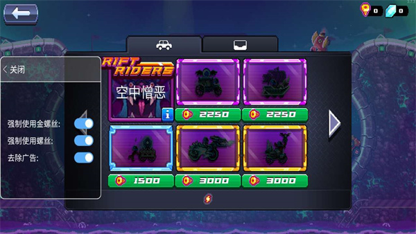 3、内置菜单suv、垃圾车和F1赛车都可以买到
