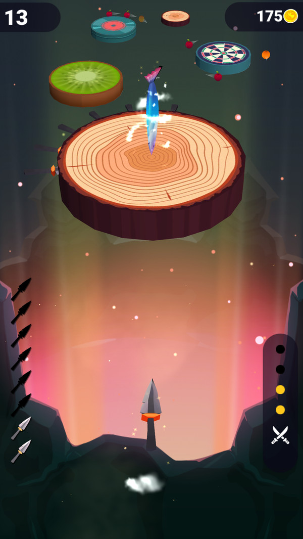 2、玩家通过扔刀射击目标,这并不容易,这是对玩家预测能力的极大考验;