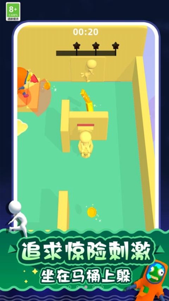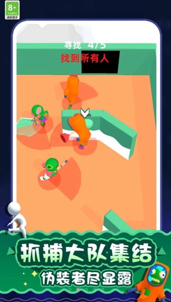 游戏的玩法跟躲猫猫非常的相似,有着大量不同颜色的小人角色,玩家可以自由的选择使用,感受休闲欢快的玩法,在这里黑夜中进行的潜行,与墙融为一体,躲避敌人的追击,完成任务挑战,超级的欢乐,可玩性非常高,值得玩家们下载来体验。