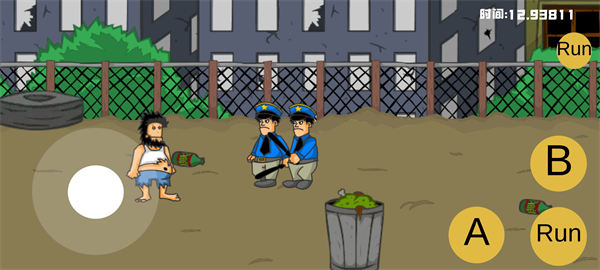 轮盘控制角色移动,【Run】奔跑,A、B攻击;