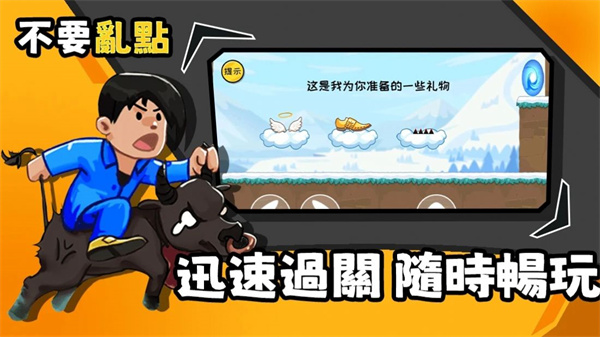 游戏中,我们需要控制住自己手指的跳跃力度,非常有趣!这不要手贱是一款魔性十足的冒险闯关类趣味手机游戏,在这里有着超多不同的特色游戏关卡,玩家可以前往各种不同的游戏场景中进行冒险,不断点击你眼前的屏幕,还有多种多样的特色游戏内容,等待玩家前来尝试,为你带来全新的游戏乐趣。
