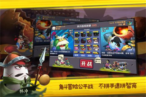 3、将不同属性的英雄组合在一起,运用你的策略,带着你的武将一起冲锋陷阵。