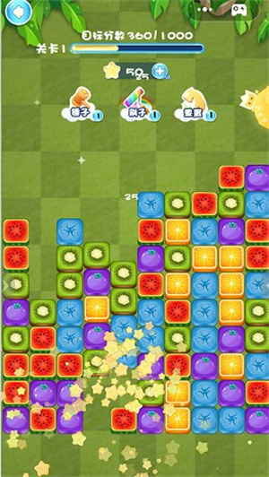 1、轻松有趣的淘汰赛玩法,疯狂地消除关卡中的所有水果方块。