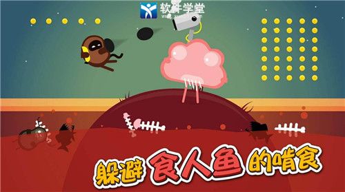 2、远离充满食人鱼的致命水域,用弹跳躲避敌人的进攻。