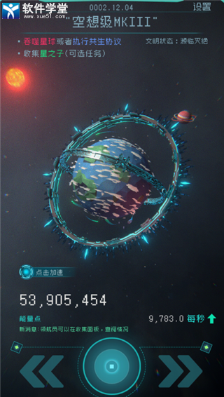 我们可以在手游中体验太空乐趣,还有各种技能,非常刺激!这逐光启航是一款太空探索放置游戏,游戏采用了非常创新的世界观依靠著名的《宇宙大撕裂假说》给玩家们讲述了一个在宇宙末日来临的前夕各种文明挣扎求生的故事,游戏的画风采用了非常科幻的未来科技风格,让整个游戏的科幻味道拉满,让玩家仿佛置身游戏当中一样,非常的具有代入感。