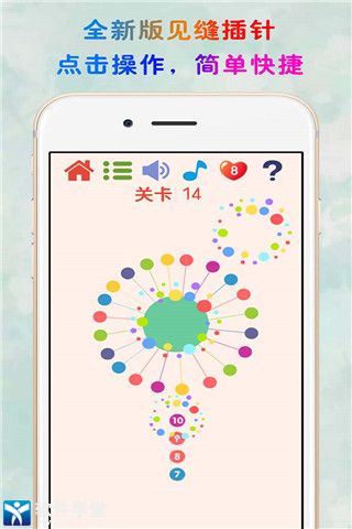 这款手游非常考验我们手力、眼力,看看我们能不能成功将小针插在小球上!这见缝插针是一看极其有趣的休闲游戏,游戏的玩法非常的简单,用户只需要将将针头发射到屏幕中间的小球上,当所有的小针都插在了小球上的时候,玩家就可以进入到下一关,随着关卡越来越往后,难度也将会越来越难,玩家在游玩这款游戏的过程中要注意千万不能让发射的针碰到之前那插进小球的针。