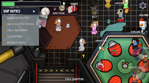 游戏中,我们要保护好队友,并消灭所有敌人!这鹅鹅鸭拥有非常紧张刺激的推理玩法,玩家将在这里随机扮演不同的阵营来获得游戏的胜利。成为叛徒去寻找机会杀死更多的玩家,或者成为好人来保护自己和自己的队友,寻找出你们身边那个潜伏的凶手。游戏的玩法十分新颖有趣,让你瞬间就爱上,喜欢这款游戏的玩家快来下载体验吧。