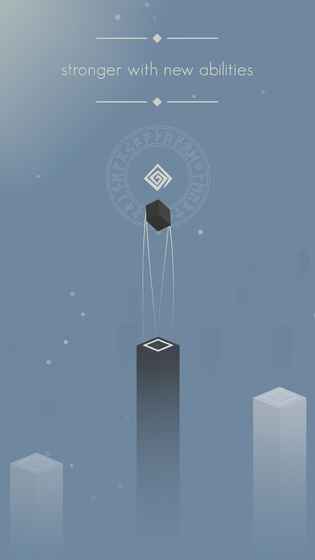 游戏目标其实比较简单,就是控制一枚小方块在各种悬空的柱子顶端跳跃,能跳多远就跳多远。玩家要控制好小方块跳跃的力度和角度,这两点将在准备行动时通过它前方的黑点虚线和后方的弧线体现,只要注意查看即可。