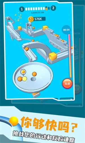 当卡通弹珠在滑梯上滑动时,玩家应准确计算滑动速度和时间。