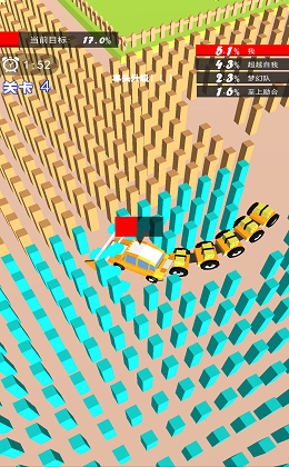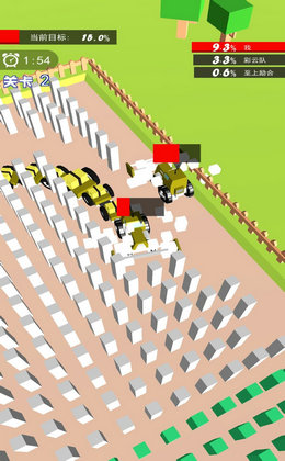 这是一款清新的卡通风格农场主题的竞技游戏,游戏中玩家将驾驶收割机在成熟的麦田里进行收获,