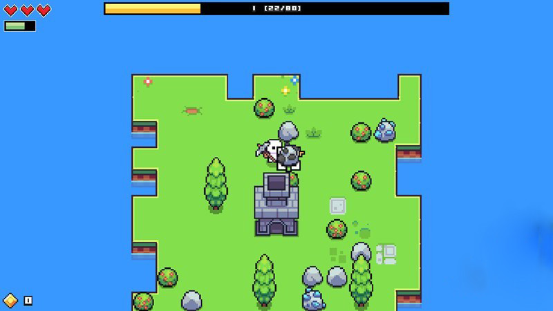 象素式画面,玩家可以自由探索世界,并搜集大量的资源制作武器物品等;