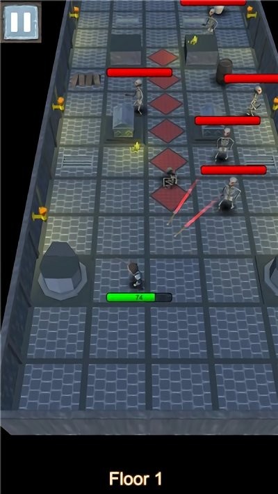 地牢挑战是款有趣的地牢冒险,游戏中你探索一个复杂的地牢迷宫,地牢里会有很多强大的怪物,那么你必须杀死怪物并获得更多的资源来提升自己,而且能有效帮助你探索,这个游戏非常有趣易控,等级敌人分布。