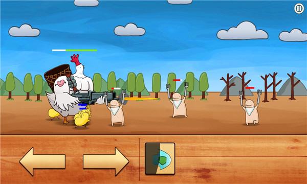 玩家将控制鸡们拿起武器去战斗,去打倒餐桌上的人类。