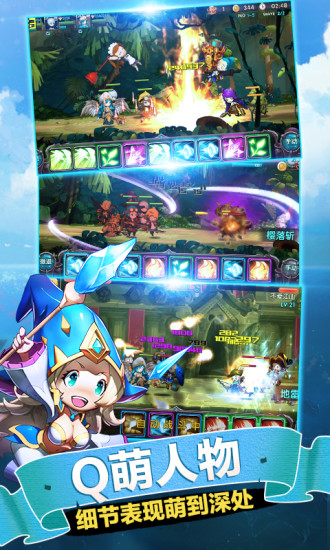 1、游戏中英雄角色设计风格采用典型的日式动漫画风,怪物使用3D建模。游戏中Q版的画风表现十分华丽,所有人物均有唯美细腻的半身像。世界背景充满层次感,让玩家从简单的操作中获得炫酷的战斗体验;