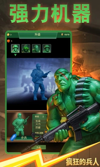 拥有军队的你,如何才能让它变强变大,如何才能用你的智慧策略将军队一步步壮大?《疯狂的兵人》是一款全新的策略战争游戏,玩家在游戏中聚集众多玩具兵资源,扩充你的军队,用大量的武器打造强大的军团,指挥军队作战,与对手决战指尖战场,并且游戏有丰富的游戏关卡,你可以尽情挑战,你可以让玩家感受到各种射击的快乐,在这里,玩家需要熟练运用战斗策略,只有精确的布局和规划,才能笑到最后,打好每一场战争,感兴趣的下载体验吧。