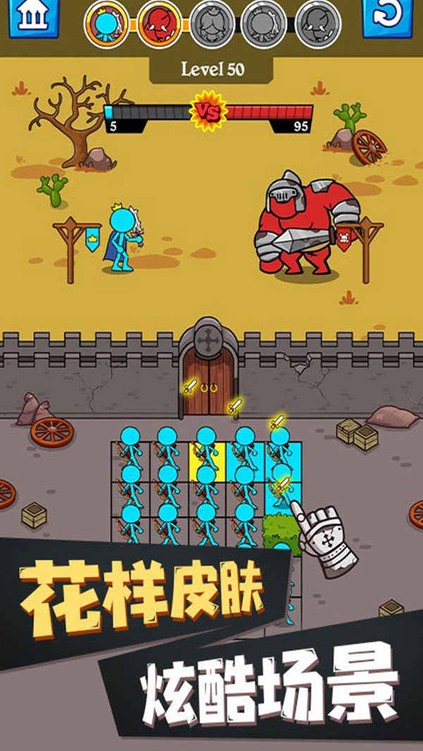 独特的对手策略决斗,你可以选择各种火柴兵,不同的士兵有约束作用。