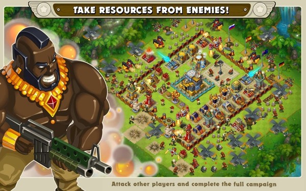在Jungle Heat中,你可以将军事基地建造成一个坚不可摧的堡垒,以此对抗其他玩家,攻破他们的基地,掠夺他们的宝藏!