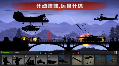 1、全程紧张刺激的配乐和音效,结合2D剪影效果和特效蒙版的处理,让你切身感受到作为战地指挥官的神圣使命感。