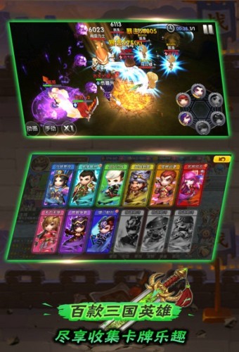 以卡牌集换为游戏核心,卡牌无需成长进化,三国名将等你收入囊中。