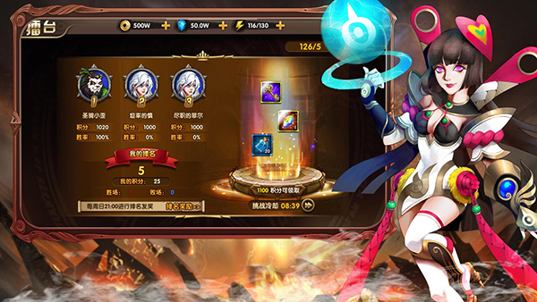 竞技场是展示玩家实力的舞台。目前游戏中竞技场分进阶战和排名战2个阶段。玩家需要从1阶打到6阶,才能进入排名战,所以大家一定要努力提升实力哟,实力不够是没法进阶的!进阶之后玩家将迎来更艰巨的挑战!