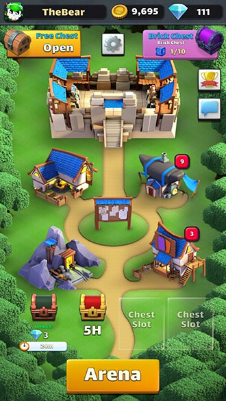 开启宝箱赢取丰厚奖励,尽可能合成高级物品升级你的卡组。