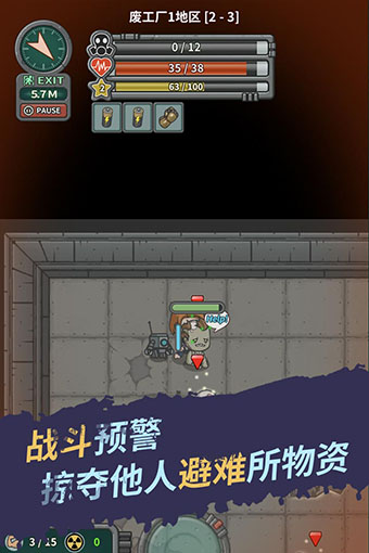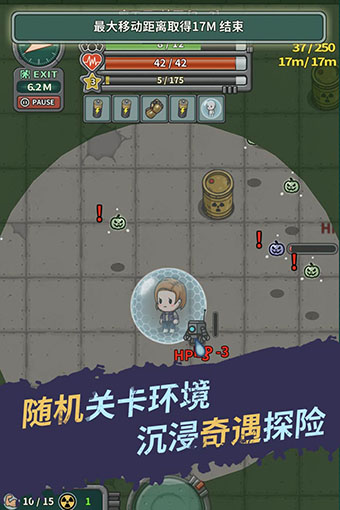 1、生存几何针对游戏的冒险玩法,只需要通过移动走位来进行地区探索,期间遇到感染的人物需要解救,各种废弃的机械或者箱子中还存着许多的辅助道具能够帮助你更好都进行挑战。