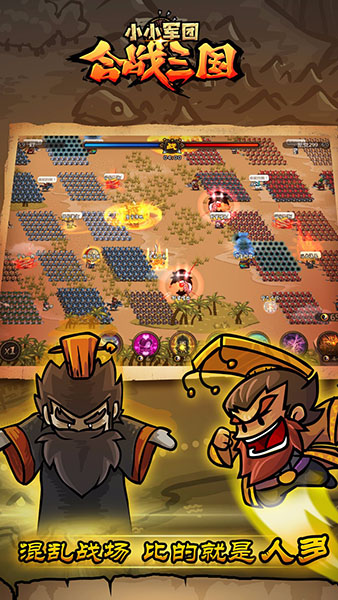 不是千人对战,场面根本不够看!真正战场,有兵有将打得才欢!幽默逗趣的三国角色,手机上的“全面战争”!25vs25将领对垒,2000个迷你士兵同屏激战!史上人数最多的军团大战, 就是要爽要震撼!