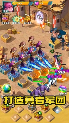 3.在战斗中,你可以实时调整你的英雄队列,释放你的军团技能,大大提高你的战斗力。游戏中的金币和材料都可以免费获得,方便升级。来试试吧!