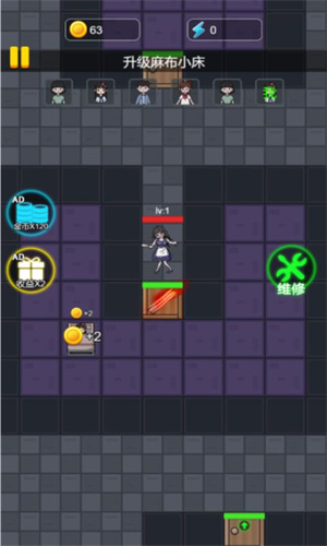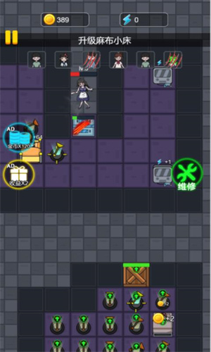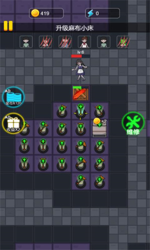 5、在房间内合理建造防御塔,用各种建筑设施提高防御力攻击力,抵御门外的猛鬼攻击,努力生存到最后。