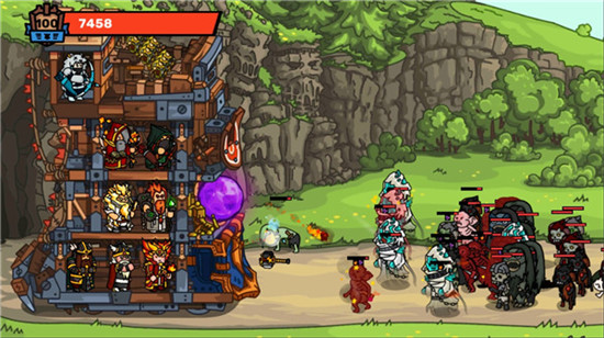 然后在战争结束后从敌人身上获取你想要的各种装备,并且还可以对你的战车进行升级,让你能够面对后面更加强大的敌人。游戏在融和了塔楼防御 (TD) 和战略元素以及角色扮演 (RPG) 的风格后,除战斗的强化升级以外,你还能针对不同兵种升级,随后你将解锁部落、地图及城市,非常的好玩。