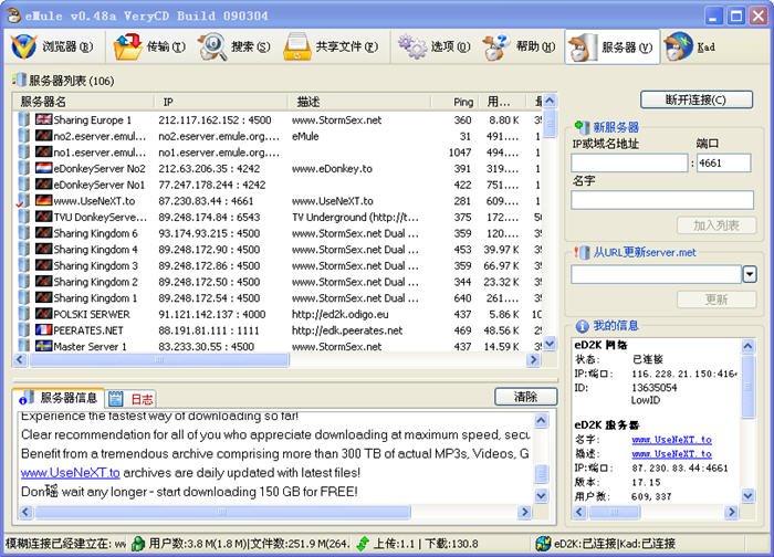 eMule是一个完全免费且开放源代码的P2P软件。利用他的卓越特性,我们不但可以与全世界的网友共同分享资源,充分享受自由共享的乐趣!