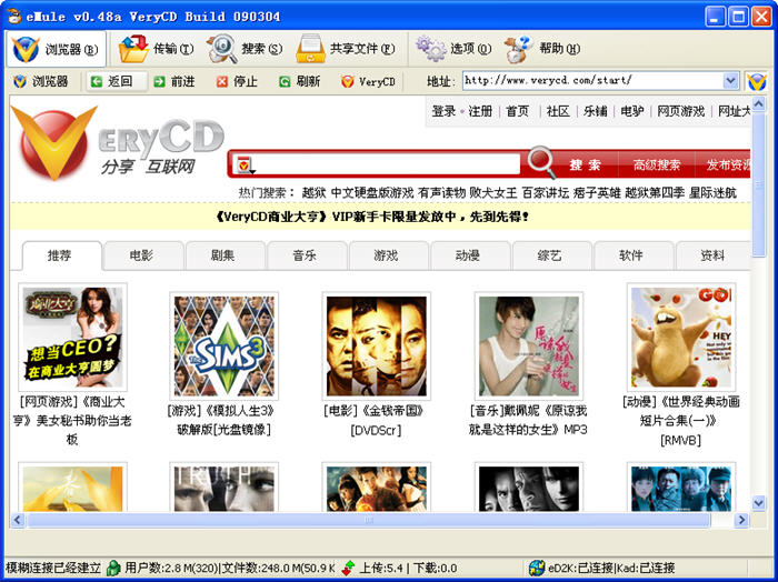 电驴1.1.15自由版(无限制破解版)3.3MB6582人在玩当国内各大BT资源网站相继被关闭后,电骡成为广大网民搜索下载最新资源的宝贵方式,国内最大的电骡资源网站VeryCD出品的下载工具easyMule成为了炙手可热的下载利器。