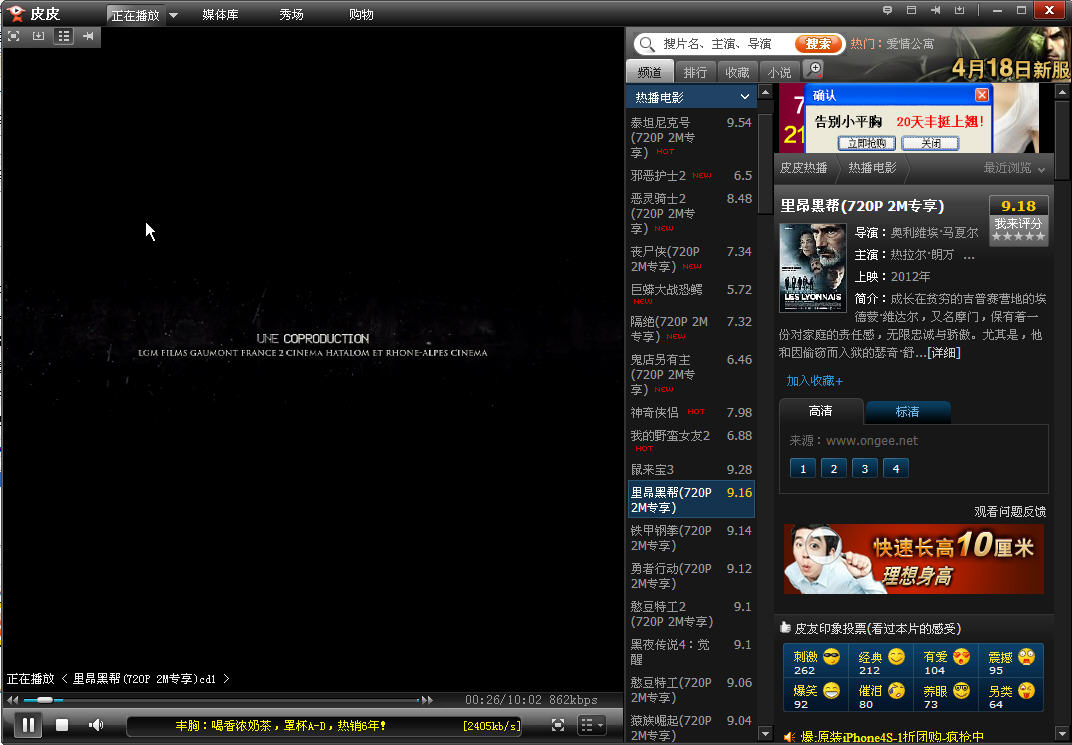 皮皮免费高清影视(皮皮播放器下载)是全球互联网上知名的在线影视播放及下载平台。安装皮皮免费高清影视即可免费观看并下载多达三万部高清电影、电视剧,且每天更新超过一百部。 皮皮免费高清影视器(皮皮播放器下载) 官方版更新: 修复播放器无法记住渲染模式的问题。 修复部分用户点播无响应的问题。