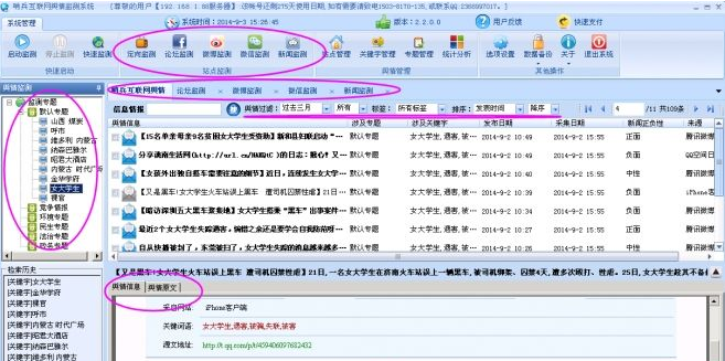 哨兵舆情监测系统 v1.2.0.5更新内容: 1、完善百度贴吧、快速监测等的发布时间的获取。 2、新增用户关键字的备份和还原功能。 3、新增清空数据库的采集数据的功能。 4、完善数据库的备份和还原功能。 5、优化系统采集网址库。
