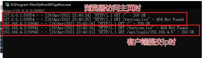 使用web.py写的简单api,默认web为http://localhost:8080。